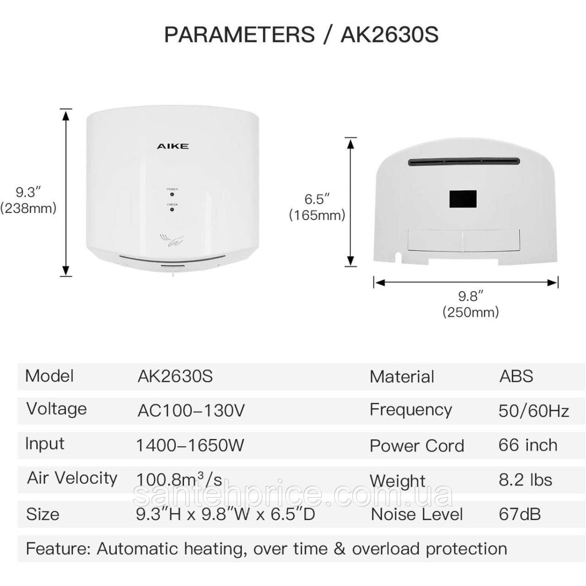 Сушка для рук ТУРБО AIKE в пласт. корпусі 1400WT біла AK2630 KW (White)