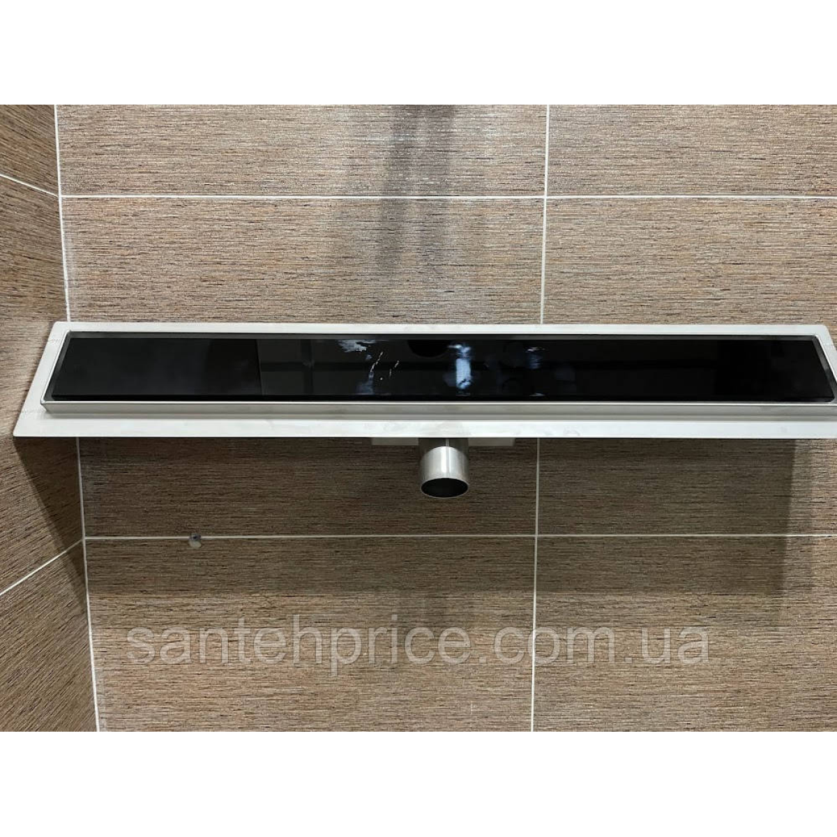 Трап поздовжній під плитку (чорна вставка) корпус нерж сталь L-1200 MD-080311-WB