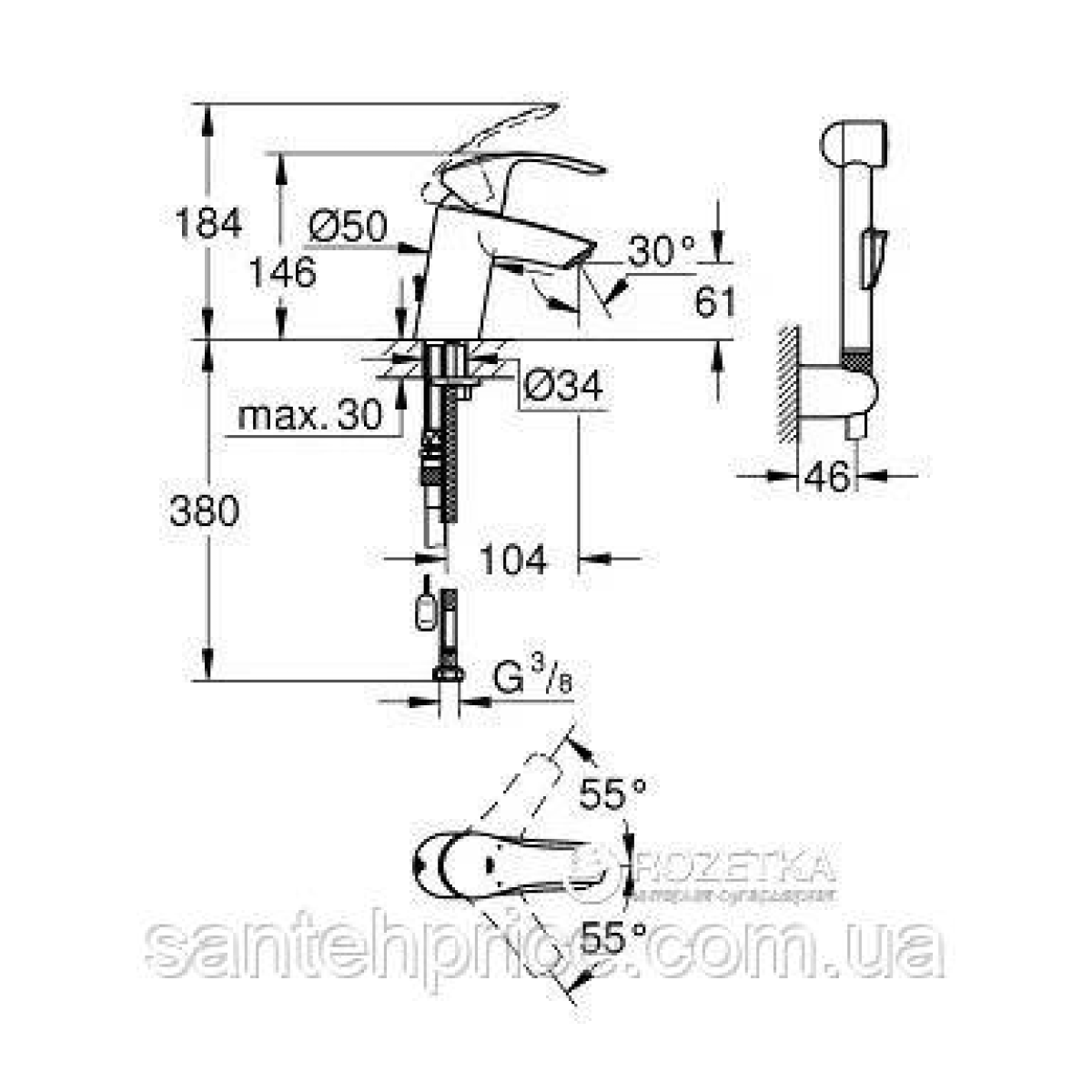 Змішувач для раковини GROHE Eurosmart 23124002 з душовим набором