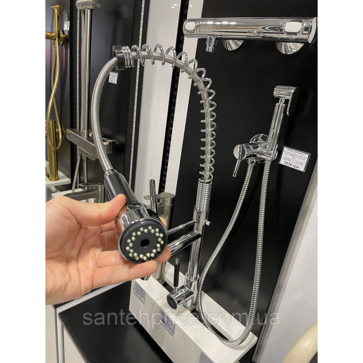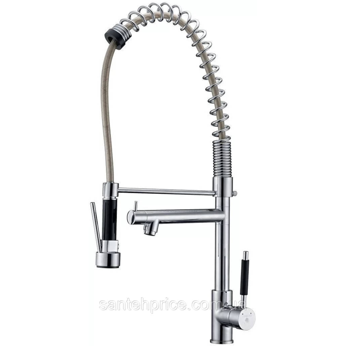 Змішувач для кухні професійна серія Kitchen латунь гнучкий вилив KT-089C хром