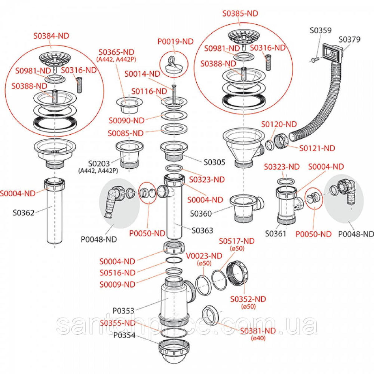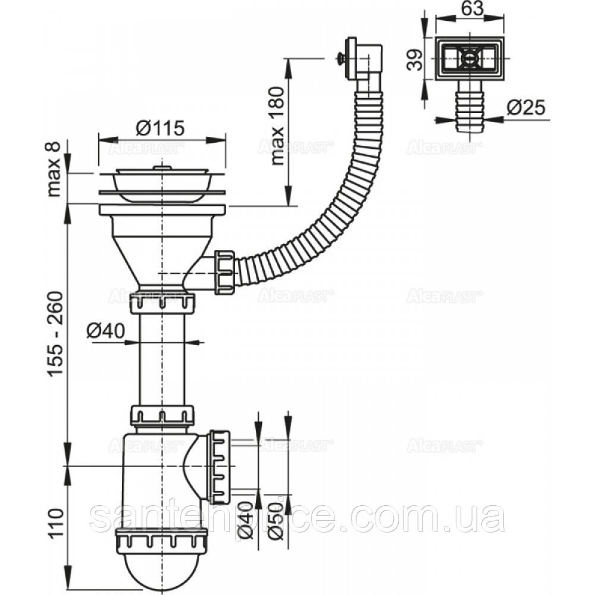 Сифон для мийки AlcaPlast A447-DN50/40