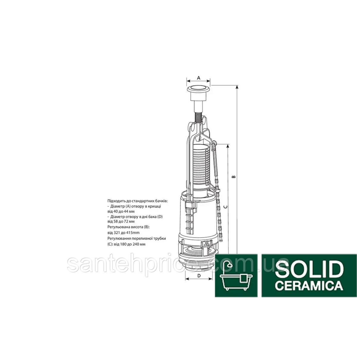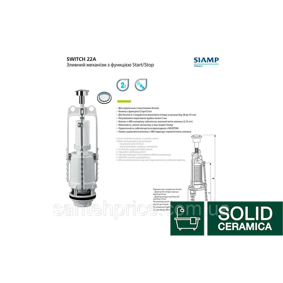 Зливний механізм Switch 22, з функцією “СТОП“, універсальний, з регулюванням по висоті