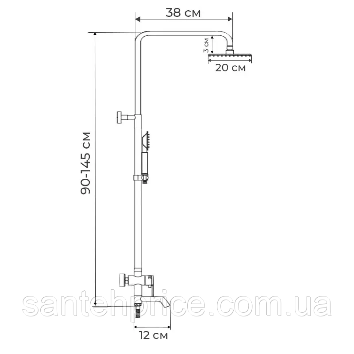 Душова система з тропічним душем і змішувачем регулюється за висотою. Зі стаціонарної стельової лійки вода подається в режимі м“який тропічний душ, друга лійка в системі ручна (ручний душ), яка кріпиться на кронштейн із регулятором і регулюється за висотою та кутом нахилу, зручне перемикання — (євро) на корпусі змішувача для перемикання води з верхньої стаціонарної лійки на ручний душ, повертаючи вправо або вліво подається потік води через потрібну вам лійку.