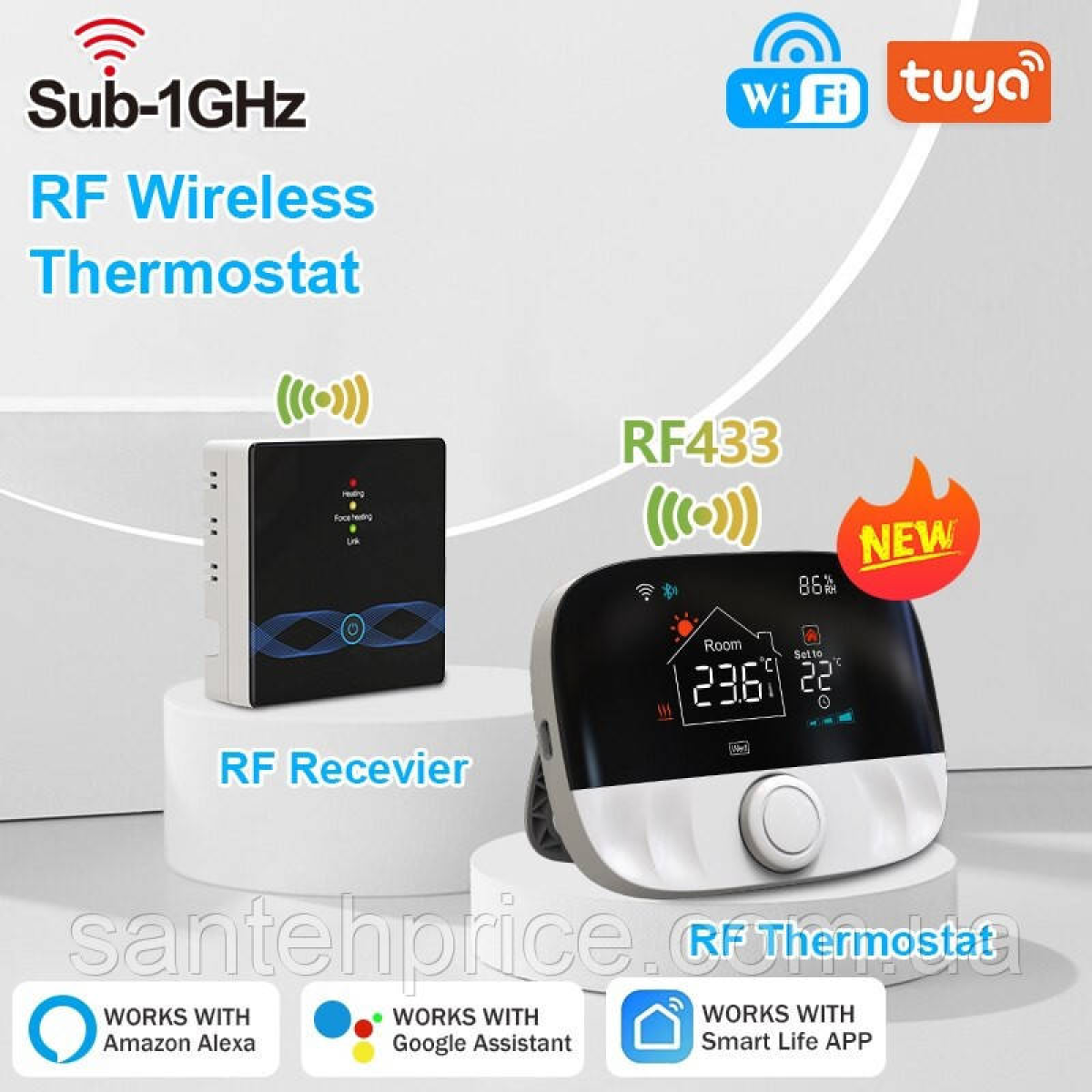 Термостат кімнатний Tuya радіо пара (ресивер та програматор) Wifi White/Black для газового котла