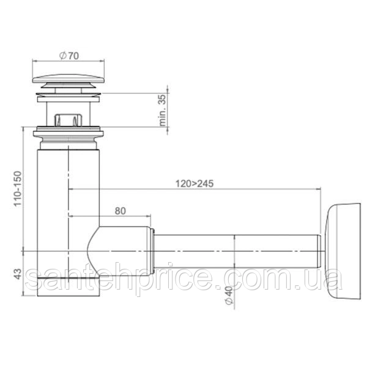 Сифон для умивальника Prevex Easy Clean, телескопічний 1512412