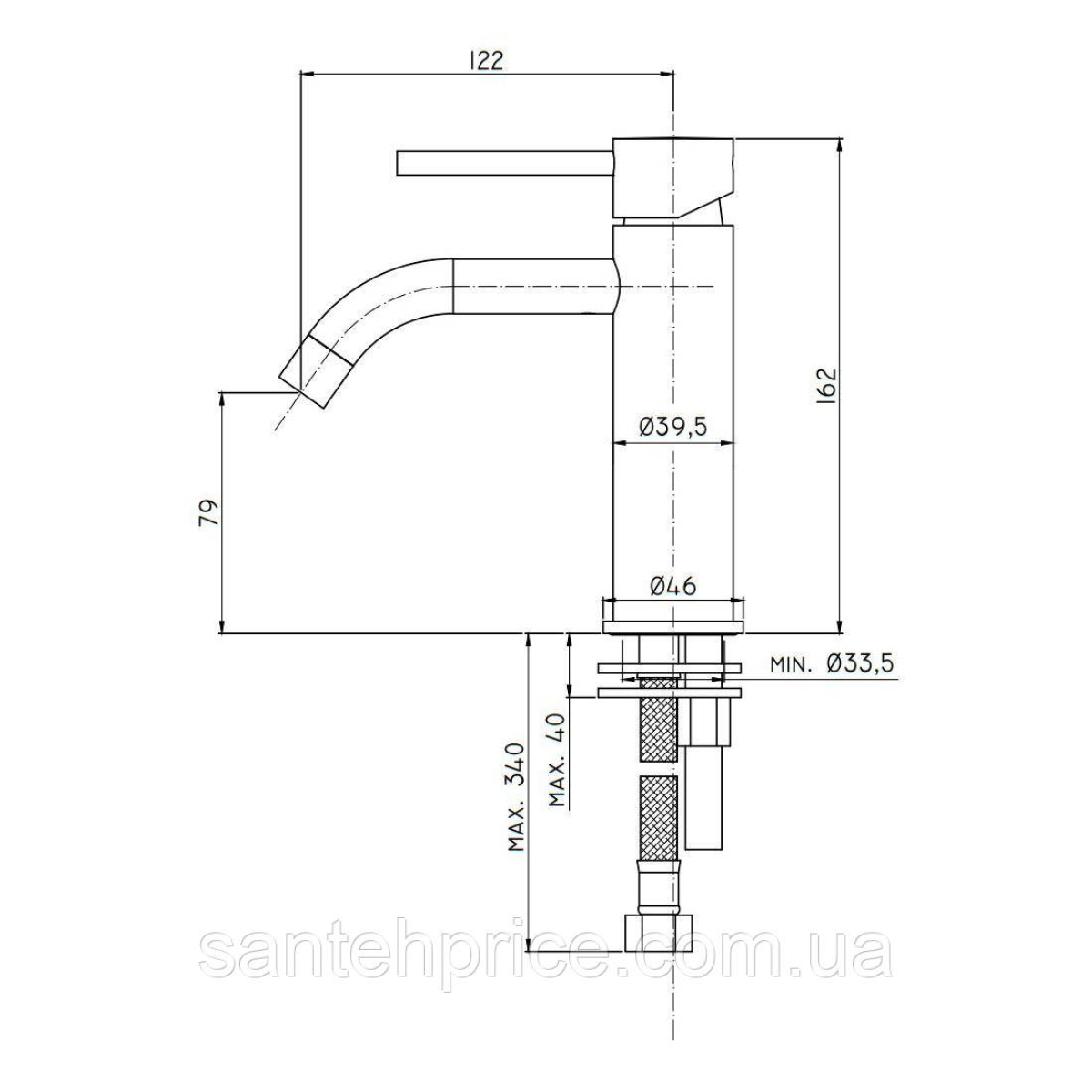 Змішувач для раковини Paffoni Light (колір - сталь), без донного клапана
