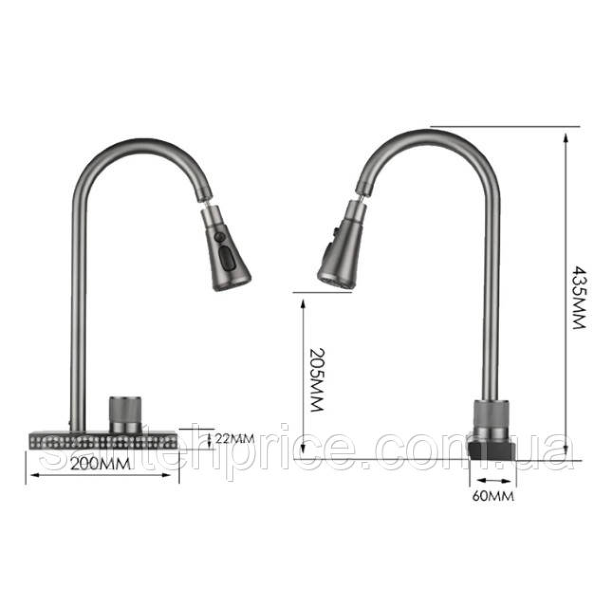 Змішувач для кухні з висувною лійкою та функцією “водоспад“ з нерж.сталі SUS304