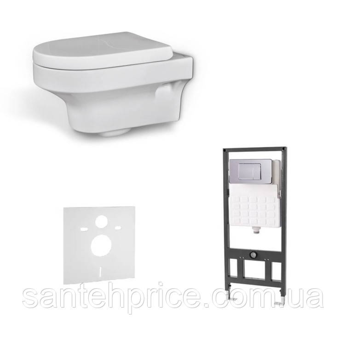 Унітаз + інсталяція Комплект підвісного унітазу з кришкою HILTON та інсталяції A-W з кнопкою