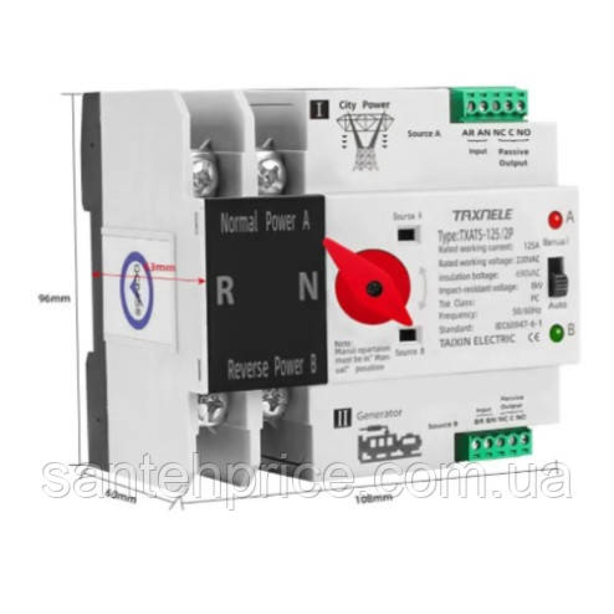 1. Пристрій TAIXIN ELECTRIC TXATS-/2P - це автоматичне перемикаючий пристрій типу терміналу. Він підходить для 2-х полюсної мережі з AC 50/60 Гц, з номінальною напругою 220В / 230 В і номінальним струмом до 125А.