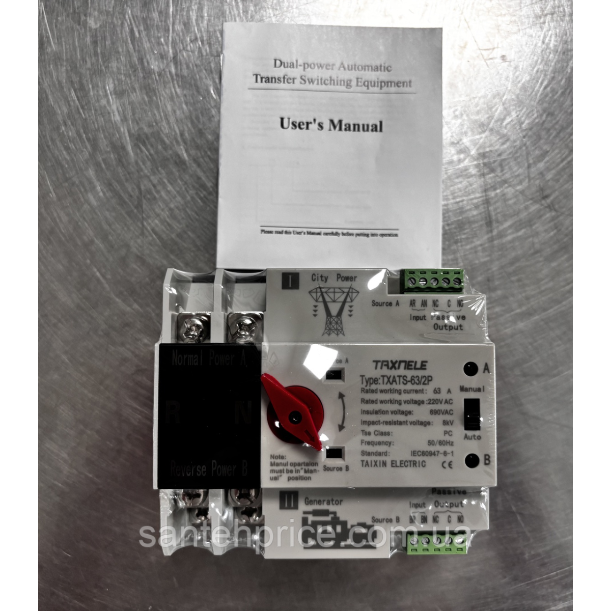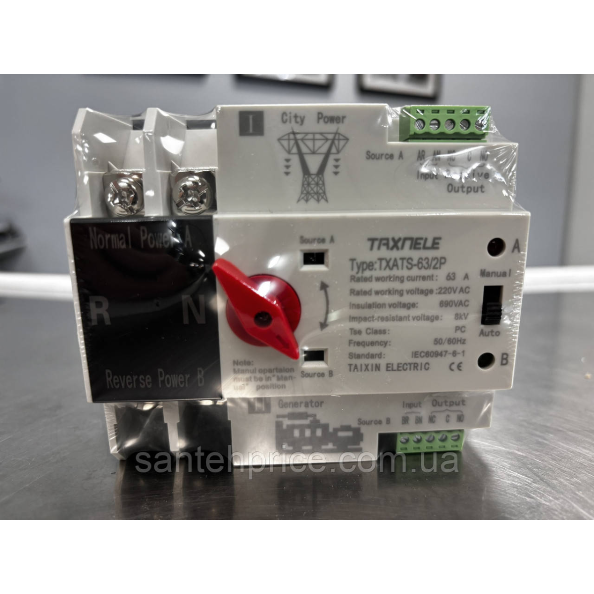 Автомат введення резерву TAIXIN ELECTRIC TXATS-/2P, 63A однофазний змінного струму 2-х полюсний