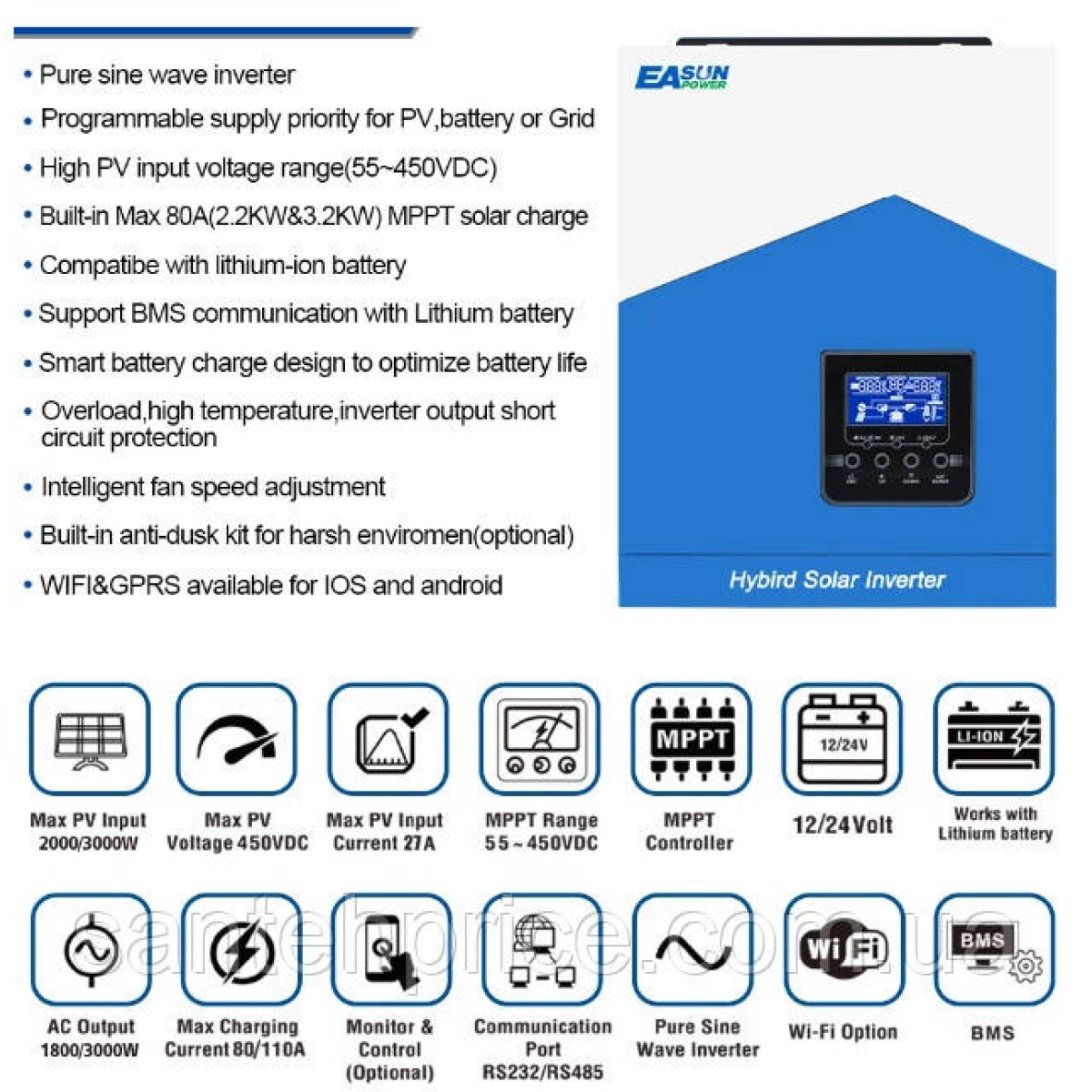 Гібридний інвертор EASUN POWER ISolar SMH-II-7KW-WiFi, 48V, 7000 Вт (джерело безперебійного живлення, UPS)