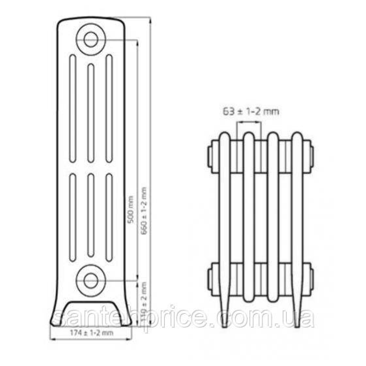 Радіатор поставляється в грунті. Збираємо радіатори з необхідною кількістю секцій. Данна модель може бути навесною (без ніжок) та напольною (на ніжках). Вартість вказана за 1 секцію.