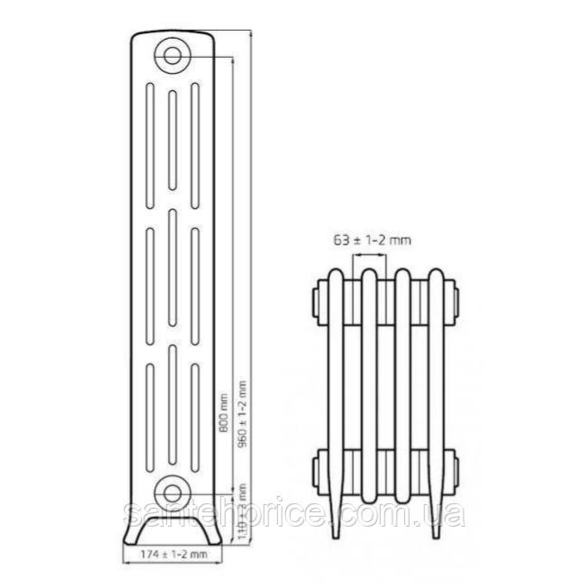 Радіатор поставляється в грунті. Збираємо радіатори з необхідною кількістю секцій. Данна модель може бути навесною (без ніжок) та напольною (на ніжках). Вартість вказана за 1 секцію.