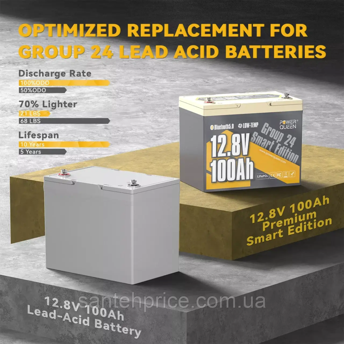 Опис Акумуляторна батарея Power Queen 12V 100Ah LiFePO4 Group 31 Lithium 1280Wh 100A BMS