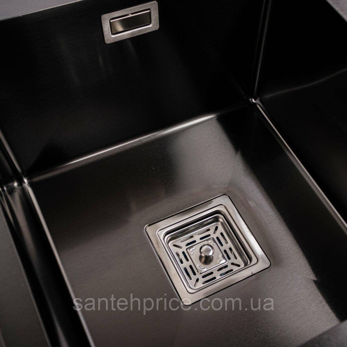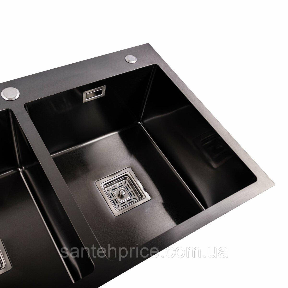 Кухонна мийка Platinum Handmade PVD HDB чорна 780х480х230 на дві чаші (квадратний сифон,3.0/1.0)
