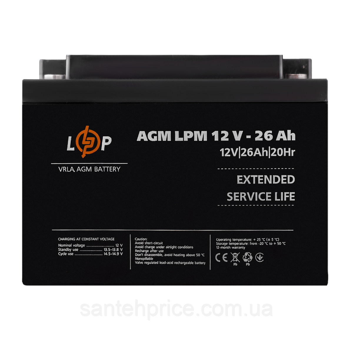 Акумулятор свинцево-кислотний AGM Зовнішня універсальна АКБ, виготовлена за технологією AGM – повністю герметичне зовнішнє джерело живлення, яке не потребує технічного обслуговування в процесі зберігання та експлуатації. Технологія виготовлення універсальних зовнішніх акумуляторів AGM (absorbent glass mat) передбачає наявність усередині батареї абсорбуючої прокладки зі скловолокна. АКБ цього типу чудово справляються з підвищеними навантаженнями. Переваги AGM акумулятора: Ресурс циклів заряд/розряд у AGM акумулятора – 400* (загалом 5 років, залежно від умов експлуатації). Акумулятор можна встановлювати у житлових приміщеннях. Відсутність вільного рідкого електроліту між пластинами та повна герметичність корпусу виключають витікання кислоти та гарантують відсутність шкідливих випарів. Ці акумулятори при практичному використанні показують стабільні результати під час роботи в умовах низьких (-20°С) та високих (+50°С) температур навколишнього середовища. В експлуатації свинцево-кислотний акумулятор AGM здатний витримувати тривалий розряд, циклічний розряд, глибокий розряд і розряд високими струмами. Акумулятори цього типу мають низькі показники саморозряду при тривалому зберіганні та надійний самозахист від перерозряду та надмірного заряду батареї. Особливості виробництва AGM акумуляторів Всередині акумуляторної батареї, виготовленої за технологією AGM, розміщують пористі ізолюючі прокладки тонкого скловолокна. Сепаратори та електродні пластини щільно притиснуті один до одного. Таким чином, між пластинами акумулятора залишається вільного рідкого електроліту, бо він міститься в сепараторі та в активній частині електродів. Кількість рідкого електроліту дозується таким чином, щоб дрібні пори заповнювалися кислотою, а великі забезпечували циркуляцію газів. Конструкція АКБ має покращену систему рекомбінації газів - кисень і водень, що утворюються в результаті хімічних процесів, не встигають випаровуватись за межі герметичного корпусу до моменту конденсації. Області застосування: навіщо потрібен свинцево-кислотний акумулятор AGM? Універсальний зовнішній зарядний акумулятор використовують: У телекомунікаційних та інших системах зв“язку, у тому числі як зовнішній АКБ для заряджання мобільних телефонів, рації тощо. Для обладнання систем відеоспостереження, безпеки, охоронної, протипожежної та іншої сигналізації. У системах безперебійного живлення серверних станцій. Як джерело живлення для медичного, лабораторного, торговельного та іншого спеціалізованого обладнання. У системах накопичення енергії від альтернативних джерел (АКБ для сонячних батарей). Як акумулятор для аварійного або світлодіодного світильника. Як акумулятори для блоків безперебійного живлення та UPS. Які АКБ підійдуть для систем аварійного освітлення в Україні, а який АКБ купити до безперебійника? Вибір акумулятора залежить від потужності споживачів, які мають бути підключені, а також від необхідного вам часу автономної роботи електрообладнання від АКБ. Зовнішній акумулятор AGM для ДБЖ повинен мати достатній запас ємності, широкий діапазон робочих температур та тривалий термін експлуатації. Перед тим, як прийняти рішення, який акумулятор краще купити для ДБЖ, уважно вивчіть параметри джерела безперебійного живлення та визначте кількість часу, необхід