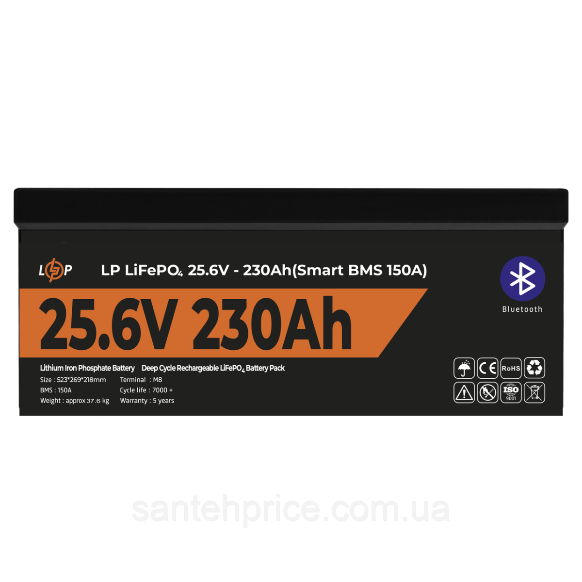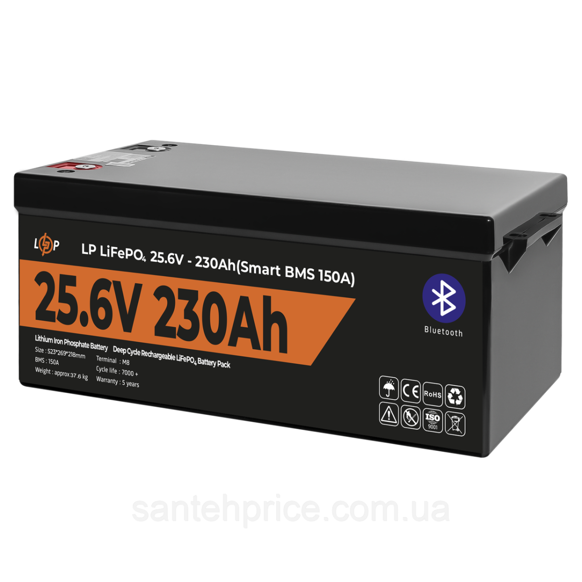 Забудьте про блекаути з літій-залізо-фосфатними (LiFePO4) акумулятором Акумулятор підходить для роботи з ДБЖ Акумулятор LP LiFePO4 25,6V - 230 Ah (5888Wh) (Smart BMS 150А) з BT пластик Максимум енергії для комфортного життя Час до повного заряду батареї від 2 годин. Більше ніж 5 годин автономного живлення для вашої техніки. 15 років ефективного використання. *Час заряду може змінюватись в залежності від струму заряду. Літієві батареї LiFePO4 українського бренду LogicPower забезпечують надійну та безпечну роботу для систем резервного живлення різної потужності. Кожна модель наших акумуляторів оснащена передовою системою управління батареями (BMS). Це гарантує максимальну ефективність, довговічність і безпеку в експлуатації. Переваги літієвого акумулятора LiFePO4 Швидке заряджання та відсутність ефекту пам“яті: Літієві акумулятори заряджаються значно швидше, ніж свинцево-кислотні. Відсутність ефекту пам“яті означає, що акумулятор можна заряджати та розряджати за будь-якого рівня зарядки без втрати ємності. Акумулятори LiFePO4 заряджаються з максимально рекомендованим струмом 0,5С, де С - ємність акумулятора. Для акумулятора LP LiFePO4 25,6V - 230 Ah максимальний струм заряду не повинен перевищувати 115 А (0,5 x 230 Ач). Важливо, щоб цей струм не перевищував BMS, щоб зберегти безпеку та продовжити термін служби акумулятора. Довговічність: АКБ LiFePO4 мають величезний термін служби. Вони здатні витримати до 7000 циклів розрядки й зарядки, що в рази перевищує термін служби свинцево-кислотних акумуляторів. Наприклад, літієвий акумулятор для ДБЖ (UPS) ефективно працюватиме понад 10 років. Безпека та екологічність: Технологія виготовлення літій-залізо-фосфату забезпечує високу стабільність і безпеку акумулятора. Термічна та хімічна стабільність - ключова особливість LiFePO4. Даний тип акумуляторів має значну перевагу в частині безпеки порівняно з іншими типами літієвих батарей. Вбудована система управління батареєю (BMS) захищає від перезаряду, перерозряду, перегріву та короткого замикання. Наприклад, використання таких акумуляторів у домашніх системах резервного живлення мінімізує ризик виникнення пожеж. Літієвий акумулятор для котла має низьку токсичність, що робить їхнє використання та утилізацію безпечною для довкілля. Компактні розміри: Літієві акумулятори легші та компактніші за свинцево-кислотні. Це спрощує їх транспортування та встановлення. Низький рівень саморозряду: Літієві акумулятори LiFePO4 мають низький рівень саморозряду, що дає змогу зберігати заряд під час простоїв без необхідності підзарядки. Енергоефективність: Висока щільність енергії дає змогу літієвій батареї зберігати більше енергії в меншому об“ємі, порівнюючи зі свинцево-кислотними акумуляторами. Де використовують літієвий (LiFePO4) акумулятор 25,6В в Україні? Резервне живлення для дому та квартири У разі відключення електроенергії, літієві акумулятори LiFePO4, можуть підтримувати роботу побутових приладів: Освітлення: Основне або аварійне освітлення в будинку. Побутова електроніка: Телевізори, холодильники, комп`ютери, роутери. Портативні зарядні станції: Для заряджання мобільних телефонів, ноутбуків та інших пристроїв. Системи резервного живлення Літієві акумулятори LiFePO4 широко використовуються в системах резервного живлення для критично важливого обладнання: Забезпечують безперебійне живлення серверів і ме