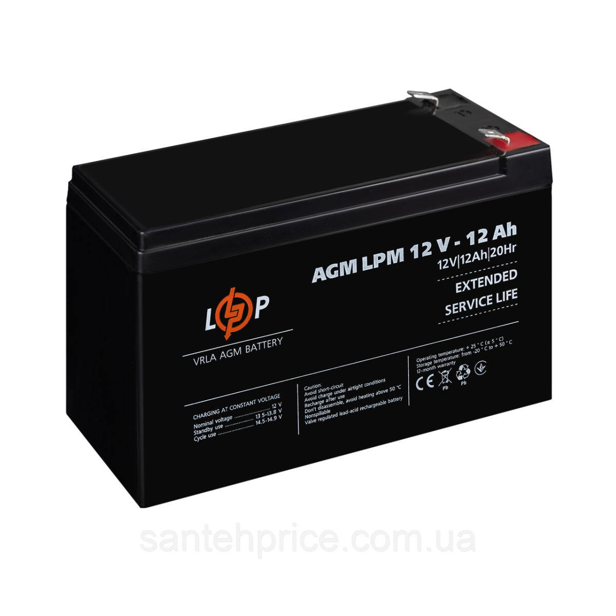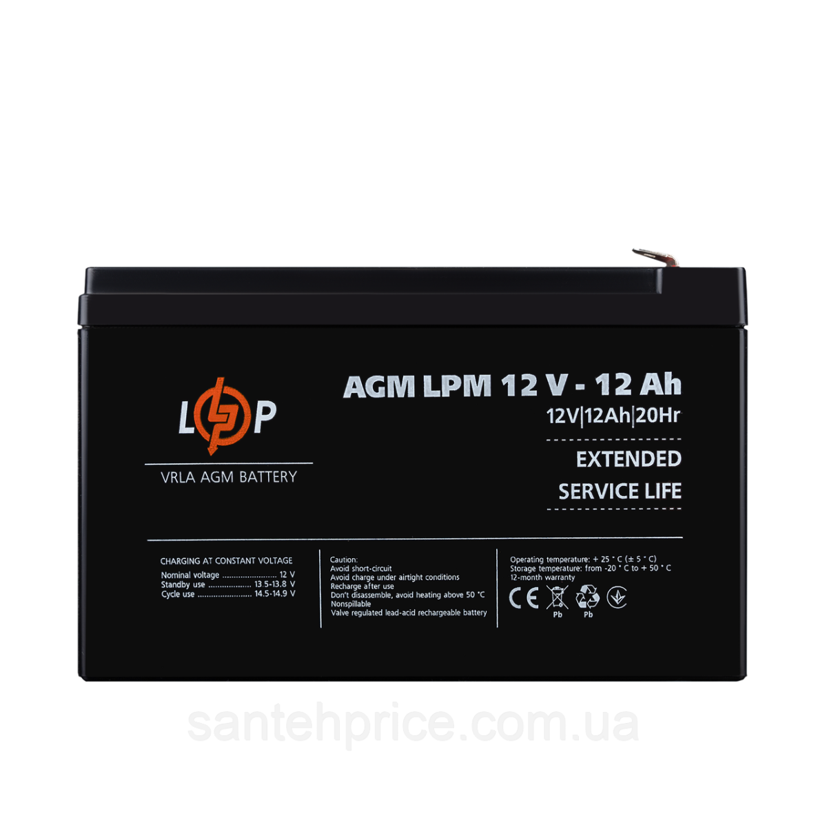 Акумулятор свинцево-кислотний AGM Зовнішня універсальна АКБ, виготовлена за технологією AGM – повністю герметичне зовнішнє джерело живлення, яке не потребує технічного обслуговування в процесі зберігання та експлуатації. Технологія виготовлення універсальних зовнішніх акумуляторів AGM (absorbent glass mat) передбачає наявність усередині батареї абсорбуючої прокладки зі скловолокна. АКБ цього типу чудово справляються з підвищеними навантаженнями. Переваги AGM акумулятора: Ресурс циклів заряд/розряд у AGM акумулятора – 400* (загалом 5 років, залежно від умов експлуатації). Акумулятор можна встановлювати у житлових приміщеннях. Відсутність вільного рідкого електроліту між пластинами та повна герметичність корпусу виключають витікання кислоти та гарантують відсутність шкідливих випарів. Ці акумулятори при практичному використанні показують стабільні результати під час роботи в умовах низьких (-20°С) та високих (+50°С) температур навколишнього середовища. В експлуатації свинцево-кислотний акумулятор AGM здатний витримувати тривалий розряд, циклічний розряд, глибокий розряд і розряд високими струмами. Акумулятори цього типу мають низькі показники саморозряду при тривалому зберіганні та надійний самозахист від перерозряду та надмірного заряду батареї. Особливості виробництва AGM акумуляторів Всередині акумуляторної батареї, виготовленої за технологією AGM, розміщують пористі ізолюючі прокладки тонкого скловолокна. Сепаратори та електродні пластини щільно притиснуті один до одного. Таким чином, між пластинами акумулятора залишається вільного рідкого електроліту, бо він міститься в сепараторі та в активній частині електродів. Кількість рідкого електроліту дозується таким чином, щоб дрібні пори заповнювалися кислотою, а великі забезпечували циркуляцію газів. Конструкція АКБ має покращену систему рекомбінації газів - кисень і водень, що утворюються в результаті хімічних процесів, не встигають випаровуватись за межі герметичного корпусу до моменту конденсації. Області застосування: навіщо потрібен свинцево-кислотний акумулятор AGM? Універсальний зовнішній зарядний акумулятор використовують: У телекомунікаційних та інших системах зв“язку, у тому числі як зовнішній АКБ для заряджання мобільних телефонів, рації тощо. Для обладнання систем відеоспостереження, безпеки, охоронної, протипожежної та іншої сигналізації. У системах безперебійного живлення серверних станцій. Як джерело живлення для медичного, лабораторного, торговельного та іншого спеціалізованого обладнання. У системах накопичення енергії від альтернативних джерел (АКБ для сонячних батарей). Як акумулятор для аварійного або світлодіодного світильника. Як акумулятори для блоків безперебійного живлення та UPS. Які АКБ підійдуть для систем аварійного освітлення в Україні, а який АКБ купити до безперебійника? Вибір акумулятора залежить від потужності споживачів, які мають бути підключені, а також від необхідного вам часу автономної роботи електрообладнання від АКБ. Зовнішній акумулятор AGM для ДБЖ повинен мати достатній запас ємності, широкий діапазон робочих температур та тривалий термін експлуатації. Перед тим, як прийняти рішення, який акумулятор краще купити для ДБЖ, уважно вивчіть параметри джерела безперебійного живлення та визначте кількість часу, необхід
