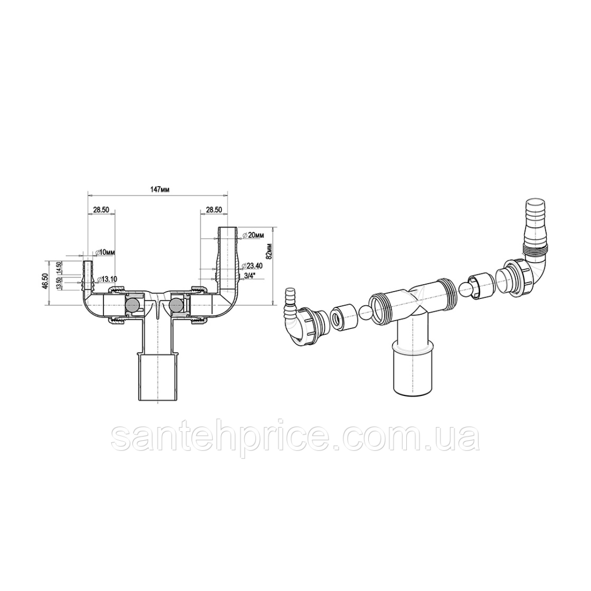 Сифон підключення до пральної та сушильної машини 32/40 мм із заглушкою, WMVT-3240PL