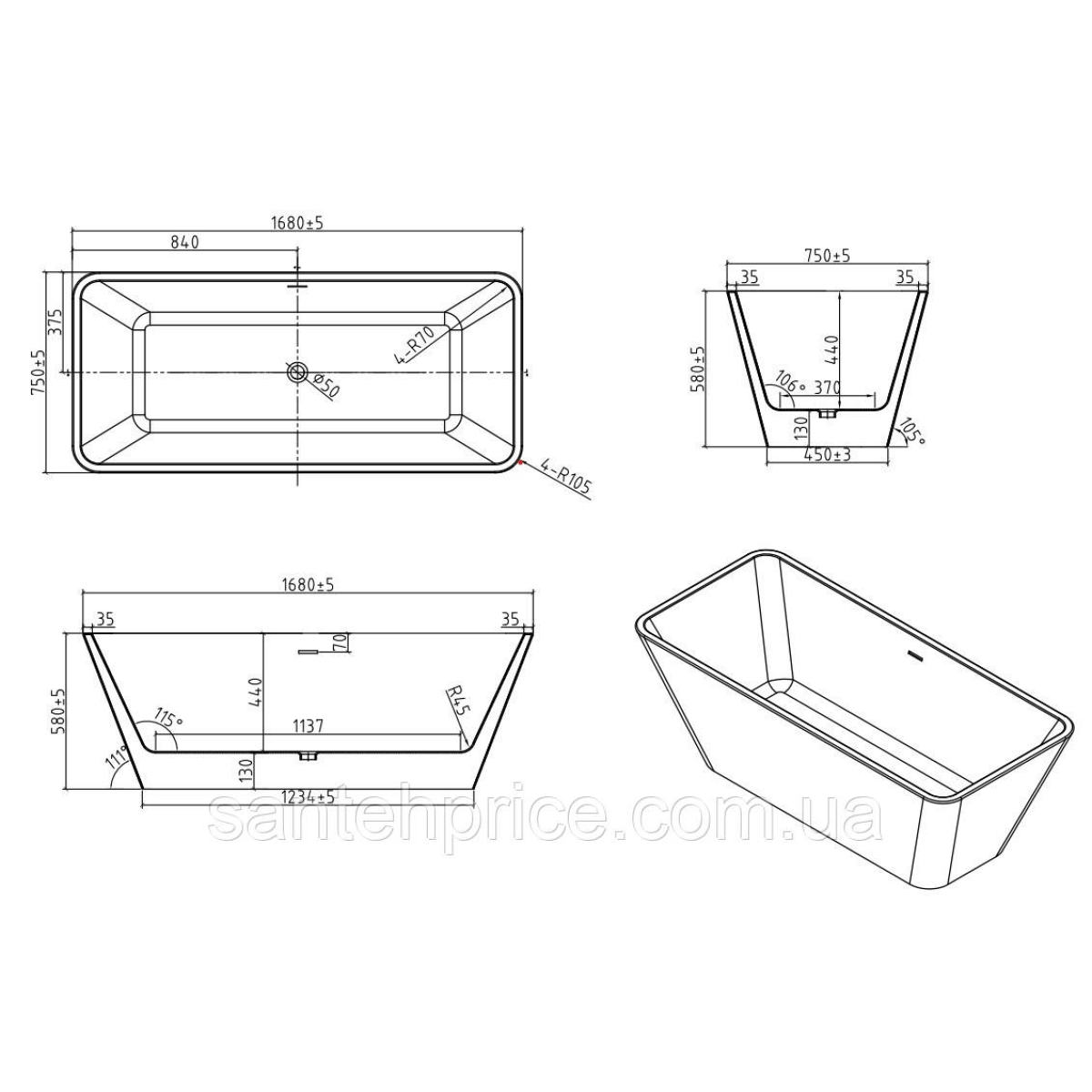 Ванна окремостояча Mia 168*75*58 ( А0056293 )