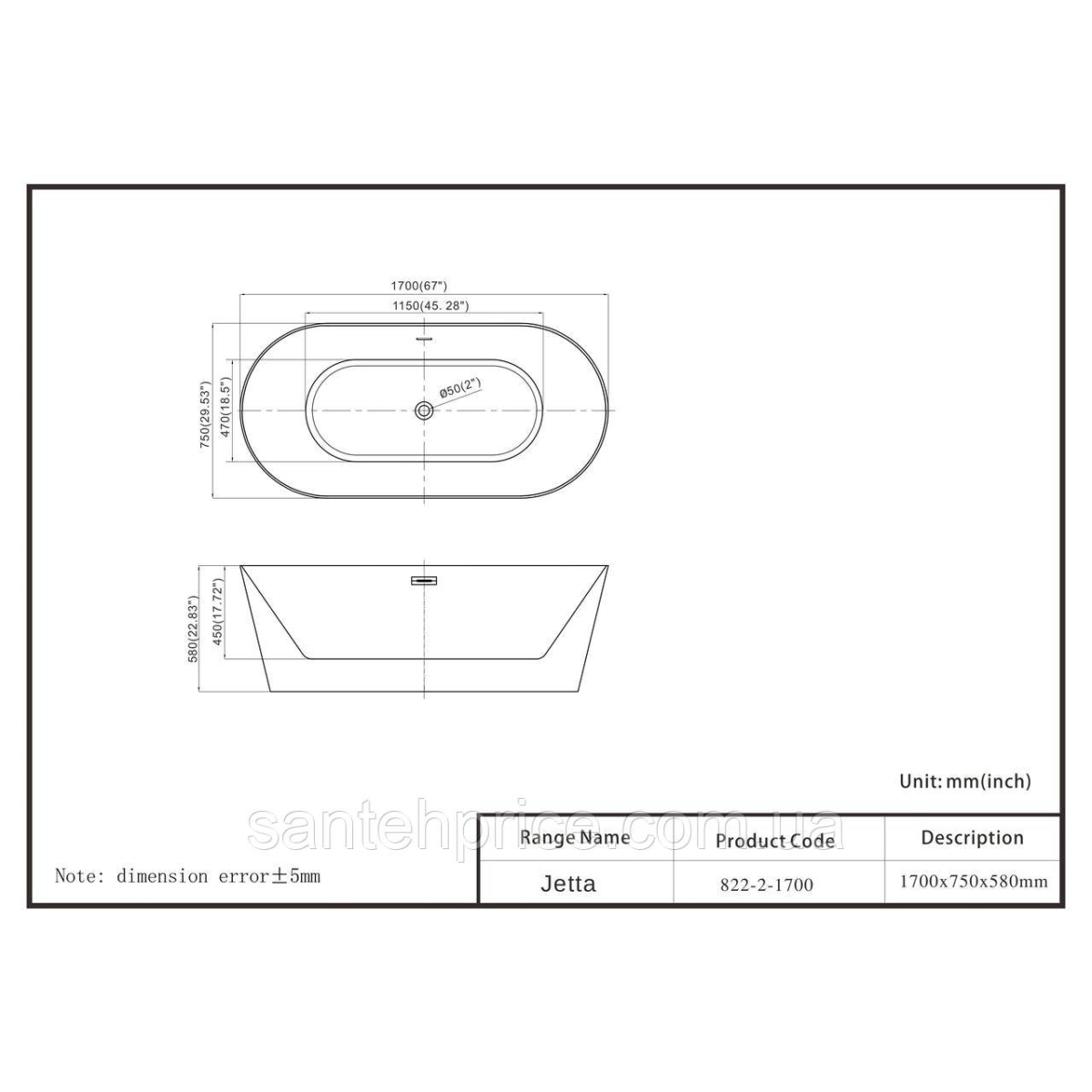 Ванна окремостояча Jetta Slim WB 170 * 75 * 58 ( А0058046 )