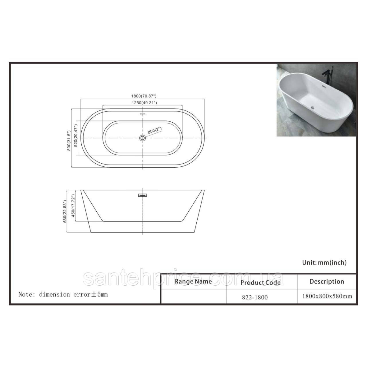 Ванна окремостояча Jetta WB 180 * 80 * 58 ( А0058045 )