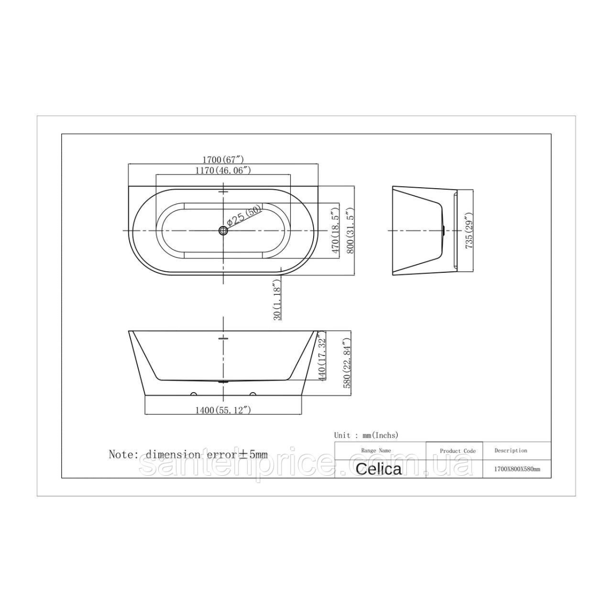 Ванна окремостояча Celica WB 170 * 80 * 58 ( А0058052 )