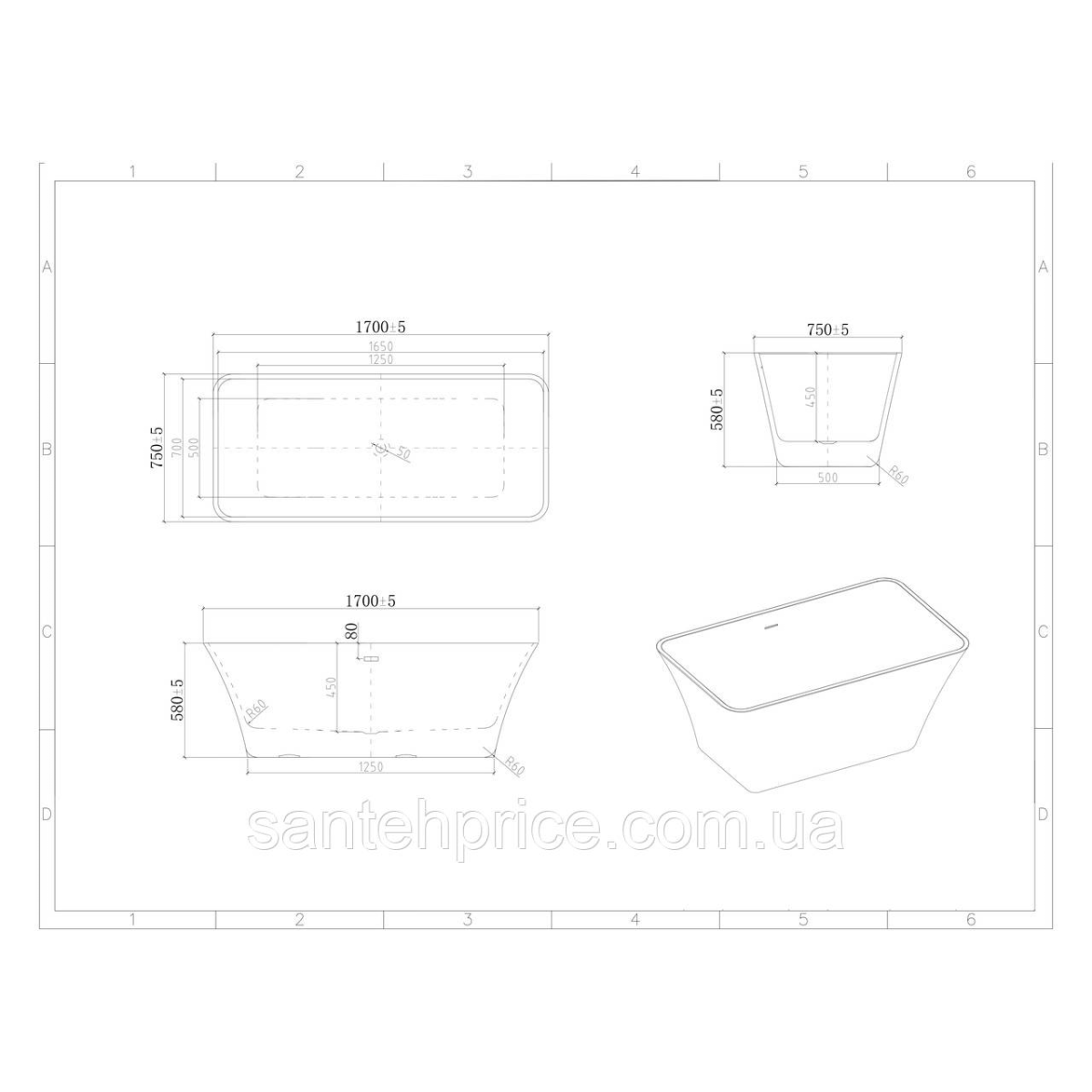 Ванна окремостояча BS - Liza 170 (209) 170*75*58 ( А0058331 )