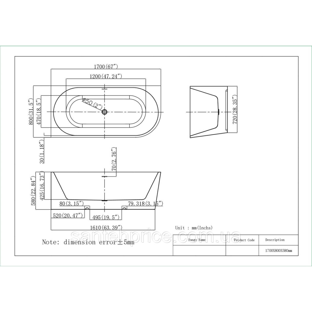 Ванна окремостояча Celica L WB 170 * 80 * 58 ( А0059317 )