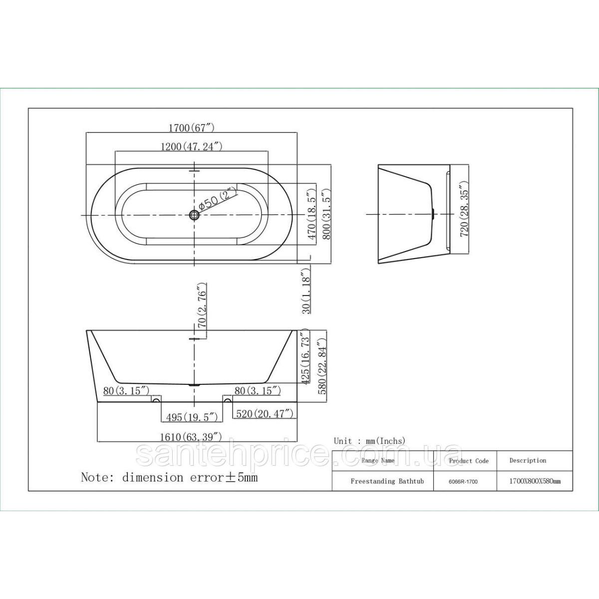 Ванна окремостояча Celica R WB 170 * 80 * 58 ( А0059318 )