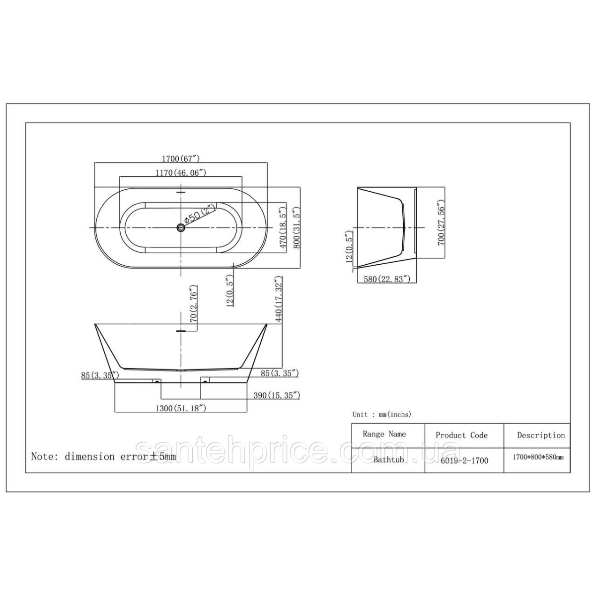 Ванна окремостояча Celica Slim WB 170 * 80 * 58 ( А0059315 )