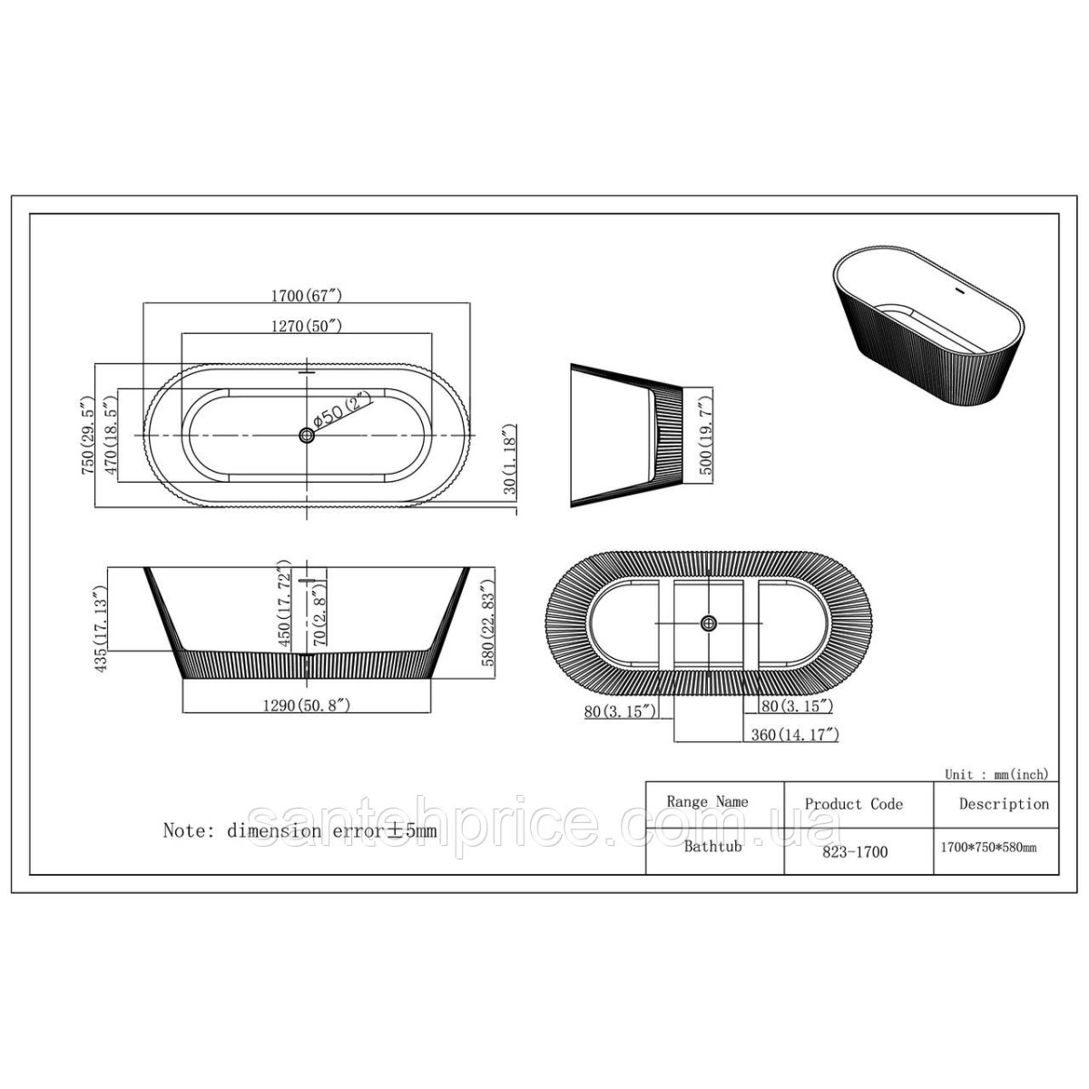 Ванна окремостояча Serena WB 170 * 75 * 58 ( А0059313 )