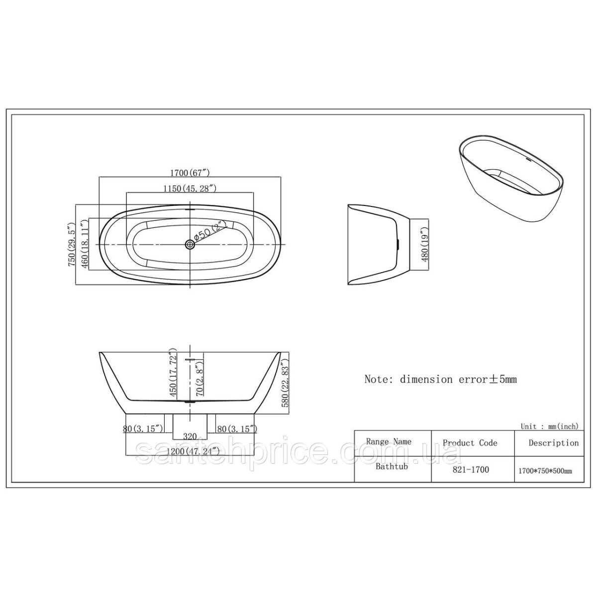 Ванна окремостояча Florencia 170 Slim WB 170 * 75 * 58 ( А0059312 )