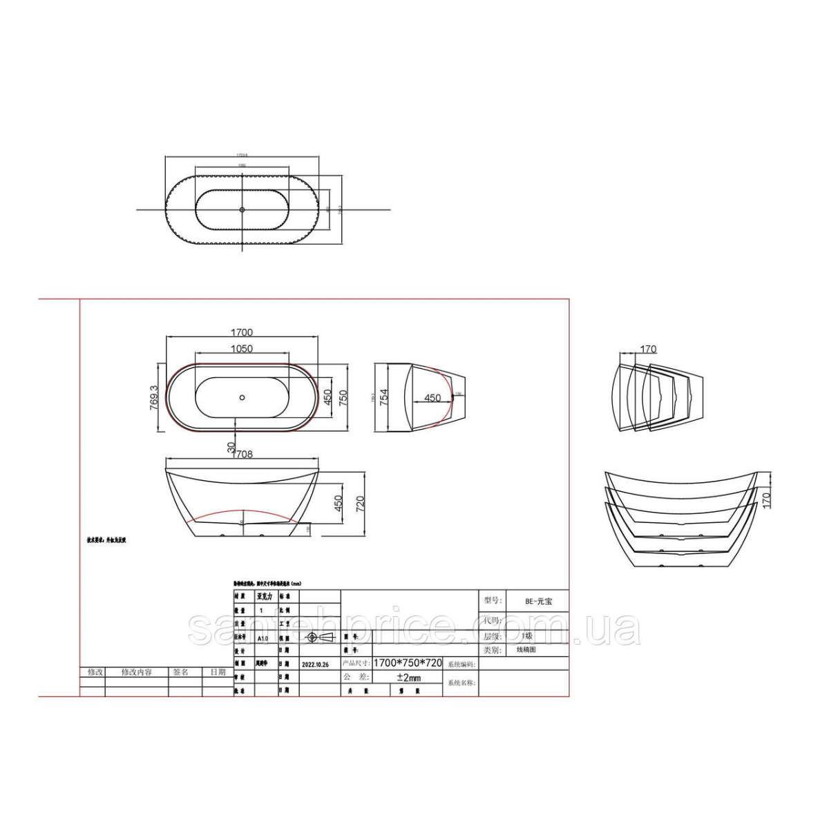 Ванна окремостояча Amina 170 L 170 * 75 * 72 ( А0059314 )